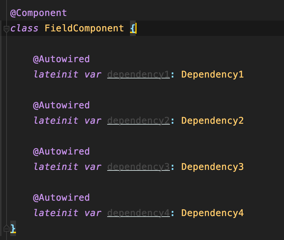 하지만 앞선 다른 방식들과 다르게 간단하게 필드에 @Autowired 같은 애너테이션만 달아주기 때문에