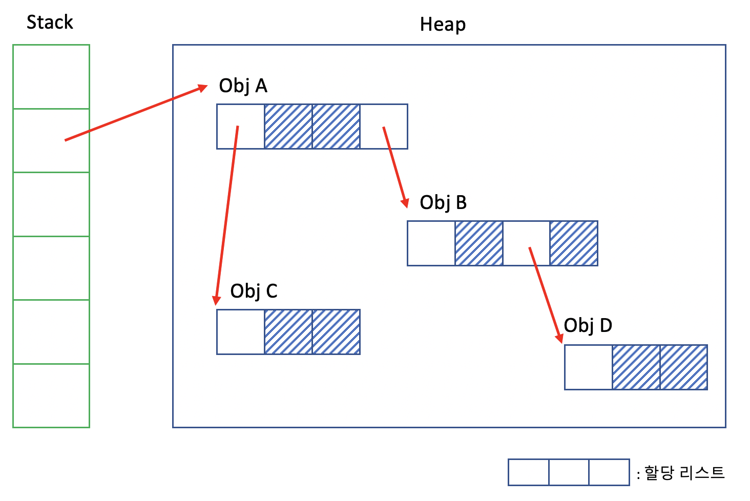 이 구조를 통해 GC는 모든 객체를 검사해가며 메모리를 해제할 필요가 없습니다.