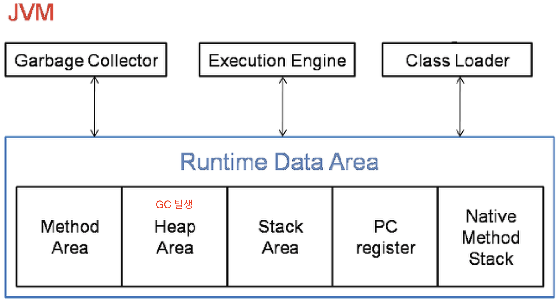 위의 JVM 메모리 구조 중 GC가 유일하게 관여하는 공간은 [Heap Area]입니다.