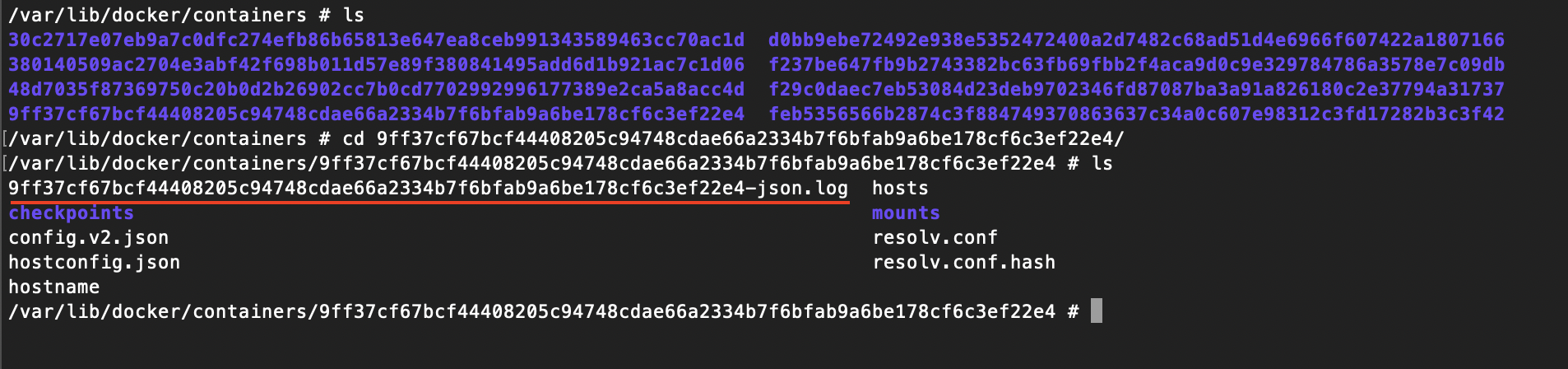 VM 내부로 들어가 확인해 보면 var/lib/docker/containers/{컨테이너 ID}/{컨테이너-ID}-json.log 안에