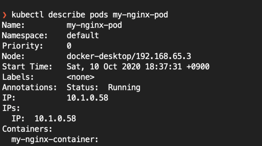 kubectl describe pods <파드 이름> 커맨드를 통해 파드의 상태를 볼 수 있습니다.