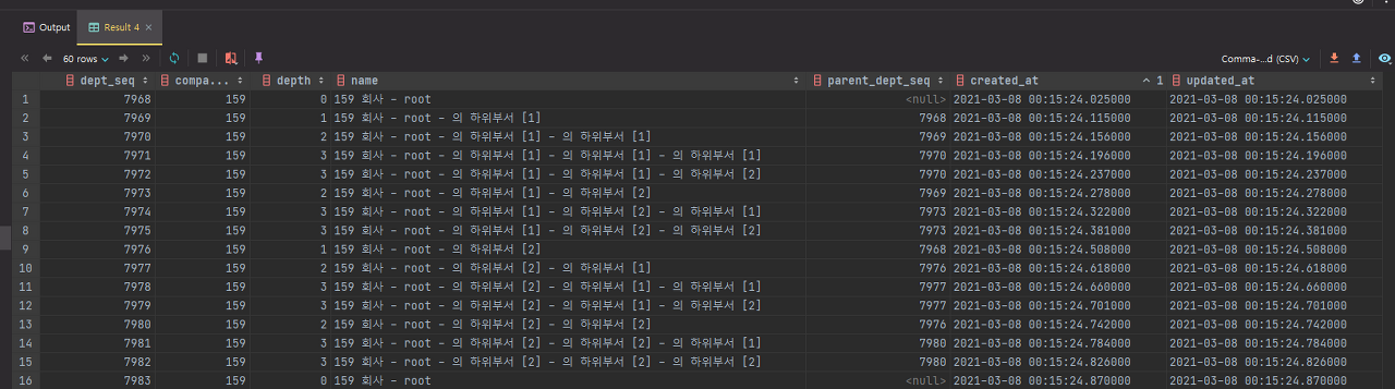 override fun findByCompanySeqWithRecursiveCte(companySeq: Long): List<DepartmentCTE> {