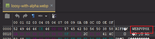 애니메이션 webp는 webp의 Extended File Format을 사용하기 때문에 WEBPVP8X로 명시되어있습니다.