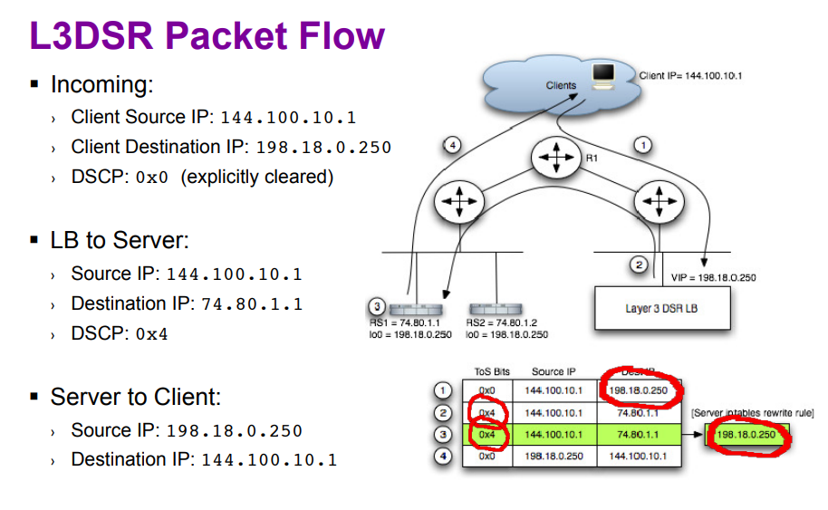 리얼서버들은 LB에서 설정한 DSCP 필드값으로 요청이 왔을 경우 목적지 IP가