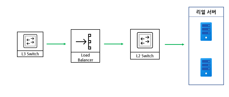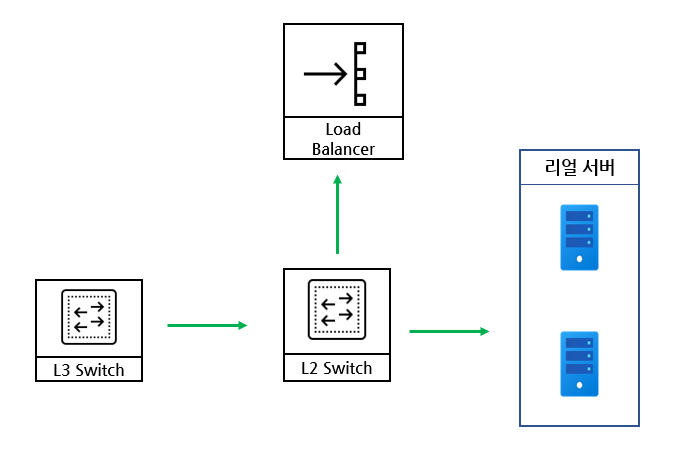 인라인 구조는 위 사진처럼 LB가 스위치에서 리얼 서버까지 일직선상 경로에 있는 형태를 말합니다.