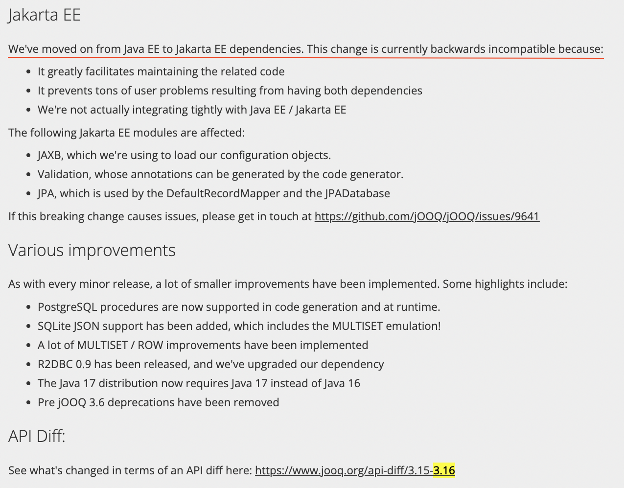 jOOQ 3.16부터는 Java EE가 아닌 Jakarta EE로 변경됩니다.