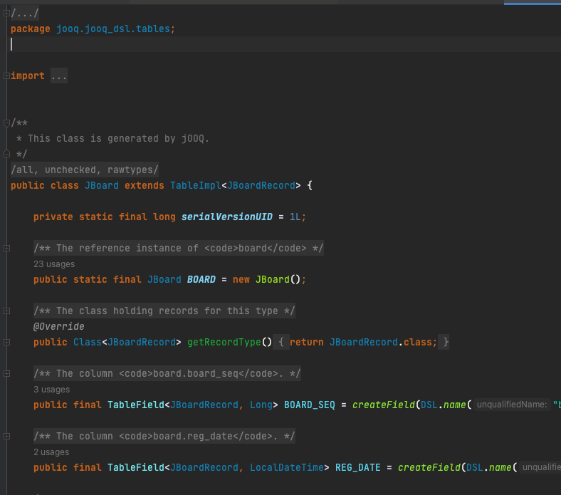 그걸 떠나서, QueryDSL은 이런거 안 해도 되는데 왜 jOOQ에서는 이걸 강제해야 되는지도 궁금합니다.