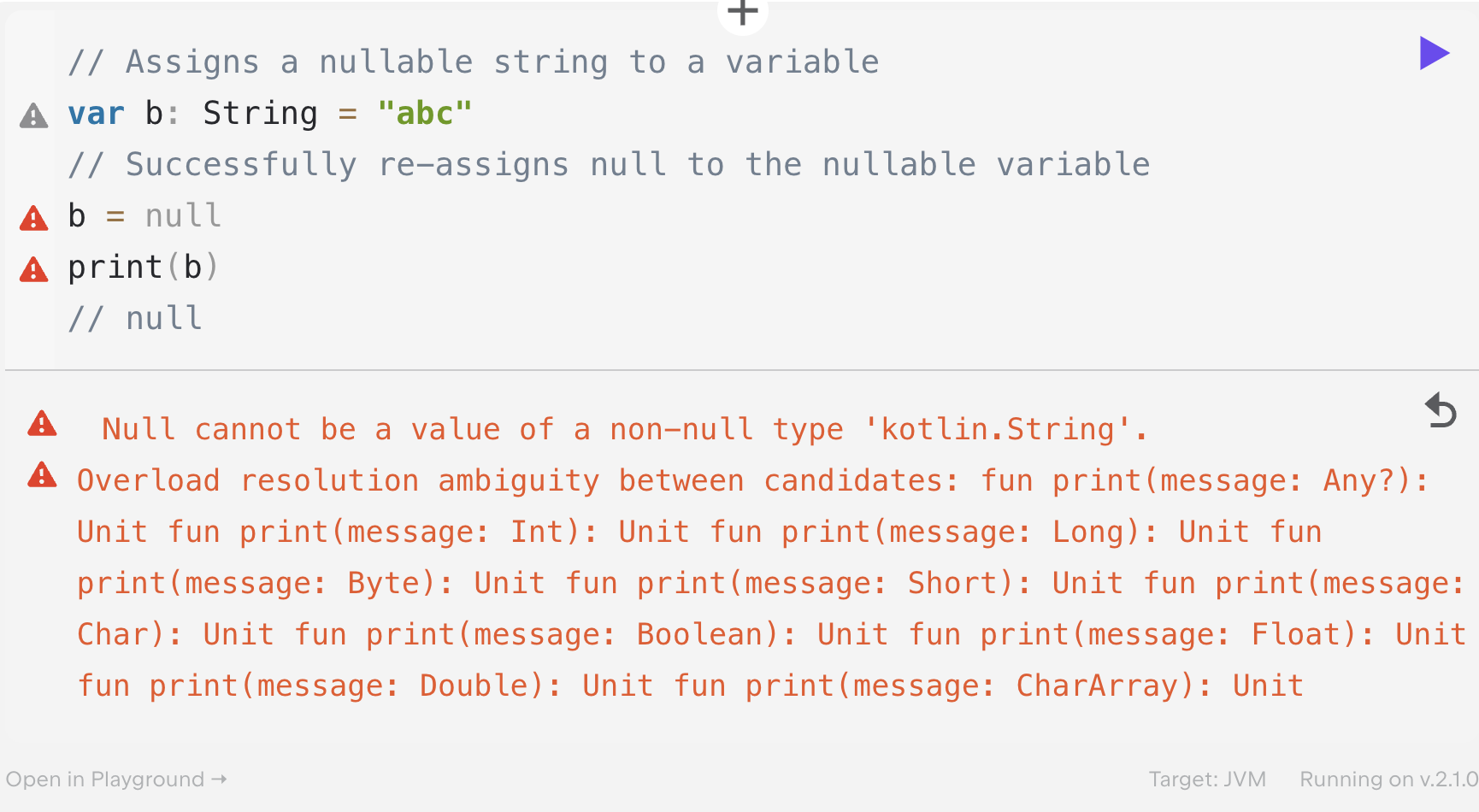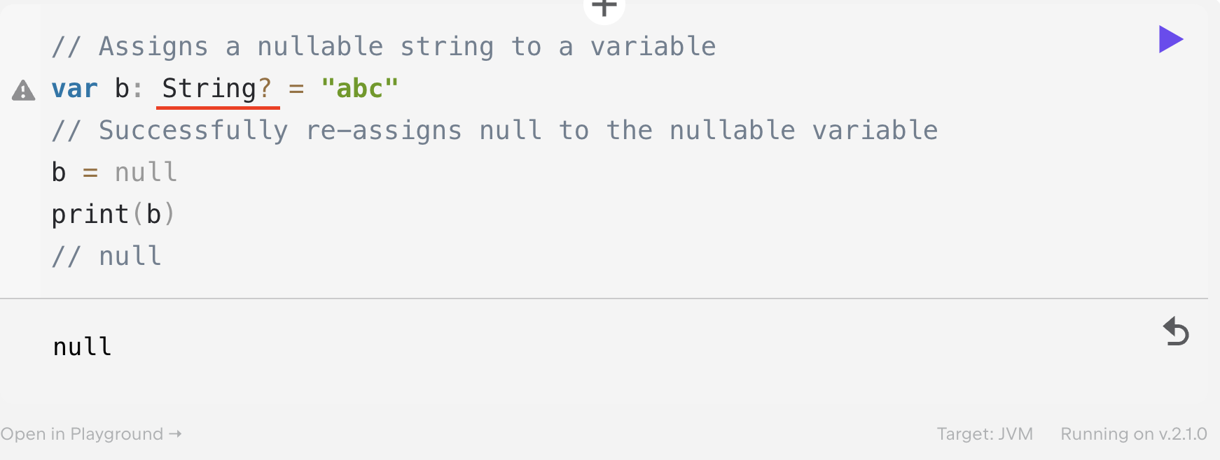 코틀린은 타입 레벨에서 변수의 nullablity를 명시할 수 있게 돼있고