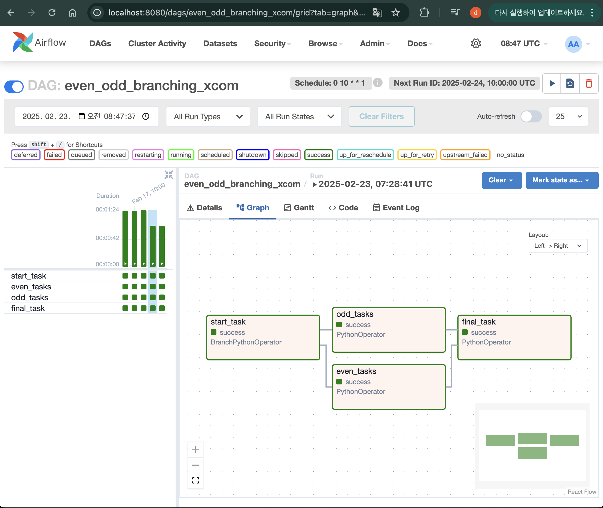 ti.xcom_push(key="even_numbers", value=even_values) # XCom 저장